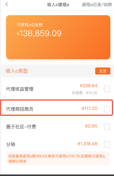 收入提现页面增加代理商招商员提现